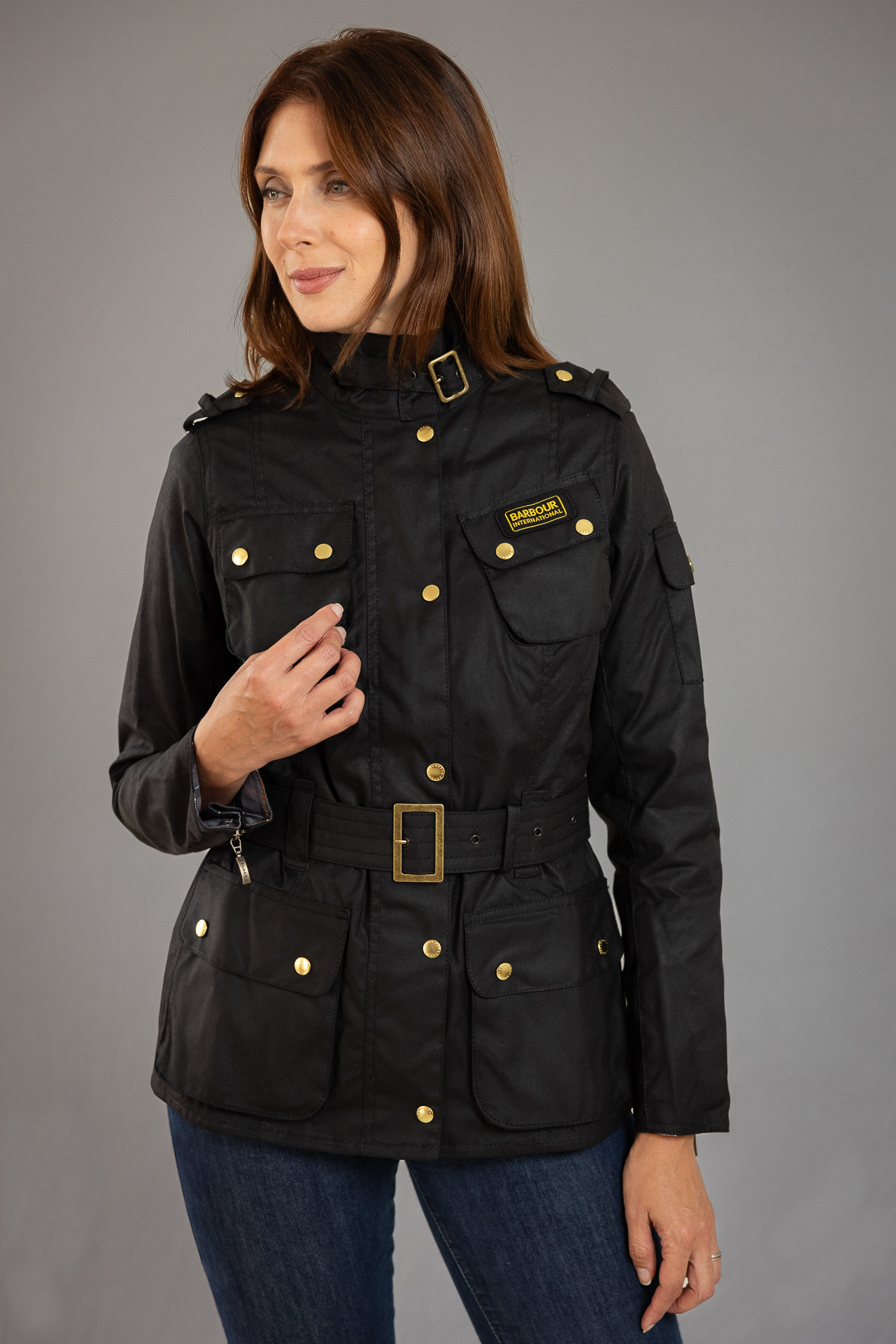 Livraison gratuiteLe modèle Ladies International est une version féminine de l’iconique veste de motard International A7, présente dans les collections de Barbour depuis 1936. Vous retrouverez ici un coton huilé 8oz, une coupe cintrée, une cinture typique de ces vestes de motard, le logo jaune Barbour International et du tartan dans la doublure et aux poignets.